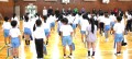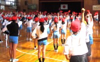 体育館では、5・6年生が運動会の練習をしていました。グランドで全体あわせを行う前の、一つ一つの動きを確認していました。当日、呼吸の合った演技が楽しみです。