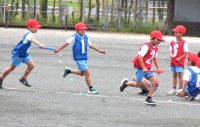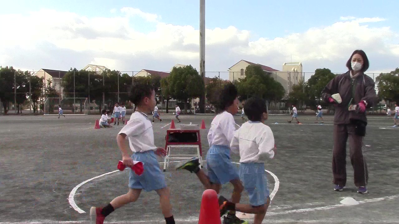 1年生の子どもたちが、小学校に入学して初めての学級対抗リレーの練習をしていました。バトンを使うのが初めてだった子どもたちもいました。でも、しっかりバトンパスができていて、感心しました。