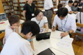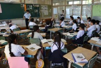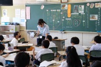 3時間目に、3年2組の研究授業がありました。子どもたちは、じんざの気持ちについて読み取ったことを話し合い、たくさんの意見をつなげることができました。仲間の意見を聞いて、うなずいたり「そうか」とつぶやき、授業に真剣に取り組んでいることが伝わりました。