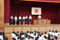 朝、学校集会で後期児童会役員と委員長、4~6年の学級代表の任命を行いました。1年生の教室では、運動会のかぶりものをつくっていました。丁寧に仕上げて、運動会で披露してほしいと思います。