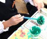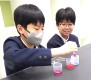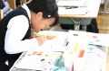 1年生の廊下に作品が掲示してありました。絵の具を水で薄めながらグラデーションをつくってシュワシュワのソーダを描いていました。子どもたちなりのアイデアがいっぱいで楽しい作品となっていました。