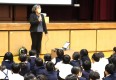 吉牟田幸子先生が、ブックトークをしてくださいました。国語の教科書にも多くのの作品が登場する新美南吉さんの著作について、熱心に語っていただきました。