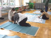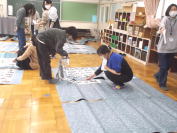 学校サポーターさんが、台紙の裏打ちや書き初め作品の貼り付けを行ってくださいました。手際よく、そして美しく作品を貼り付けてくださいました。ありがとうございました。
