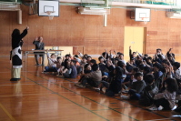 4,5年生がばち引継会を行いました。富士松東小学校では、5年生が20年以上前から和太鼓演奏に取り組み続けてきました。引継会では5年生が4年生に和太鼓の「ばち」を渡すことで、和太鼓演奏の伝統を引き渡しました。「ばち」を手にした4年生は来年度の和太鼓演奏に胸を弾ませました。和太鼓演奏の伝統はこうして引き継がれていきます。