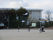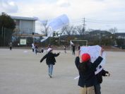 1年生が、生活科の学習で凧を作りました。そして今日、凧あげに挑戦しました。風の向きを考えながら走り込み、上手に凧をあげていました。普段したことのない遊びだけに、みんな夢中になっていました。