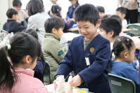 2年生が1年生を「おもちゃまつり」に招待しました。2年生が生活科の学習で作ったさまざまな手作りおもちゃを1年生に紹介し、1年生に楽しんでもらいました。この日のために、2年生は遊び方の説明を分かりやすく離す練習をしました。1年生は2年生に教えてもらいながら、おもちゃまつりを楽しみました。