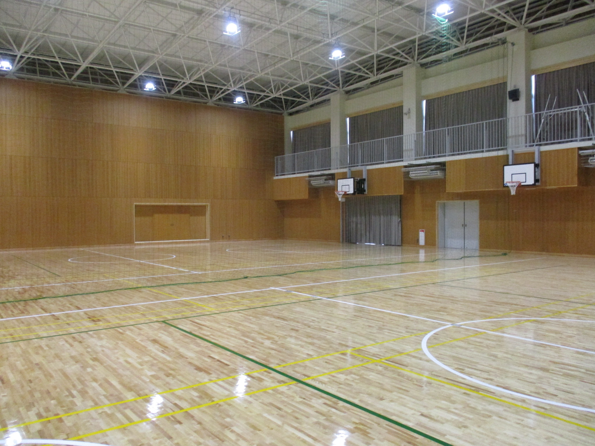 |   まだ完成はしていませんが、業者の方に新体育館の中を見せてもらいました。体育館の中は、明るい色使いでとてもきれいでした。照明も今までよりも明るく、床もぴかぴかで、ライトが反射して輝いていました。  |