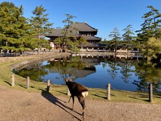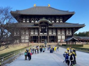 グループごとに奈良公園内の見学です。ガイドボランティアの方に説明をしていただきながら見学をします。  |