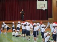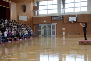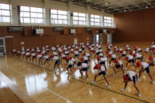 |  10月7日の運動会に向けて、各学年、演技の練習が始まっています。本日は、外の気温が高いため、エアコンの効いた体育館で元気に練習をしました。  |