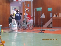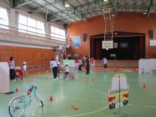 |  4年生を対象に自転車乗り方教室が行われました。交通指導員の方々の指導のもと、安全確認の仕方や、横断歩道の渡り方などを、実際に自転車に乗って体験しました。 |