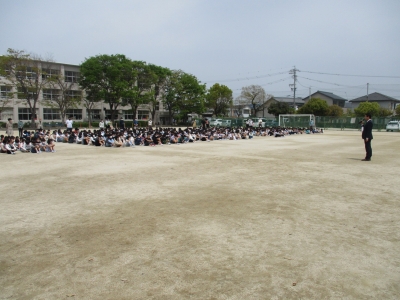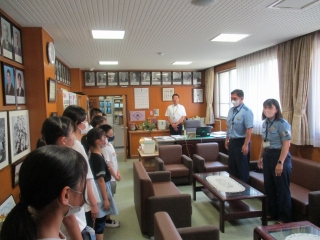|  昨年度から、刈谷警察署生活安全課の方と防犯活動にがんばってくれた防犯少年団の解散式がありました。最後に、生活安全課の方から感謝の言葉をいただきました。  |