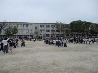 |  新しいクラスになってからの初めての避難訓練を行いました。「押さない・走らない・しゃべらない・もどらない」を守りながら訓練を行いました。  |