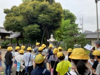 |  6年生が、「史跡めぐりを支援する会」の方を招いて、「今川・今岡を歩く会」を行いました。今川の一部と、今岡の東海道ぞいのところをまわりました。お富士の松・乗蓮寺・乗願寺など、説明をしていただきながら、いろいろな史跡をめぐりました。  |