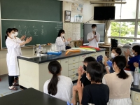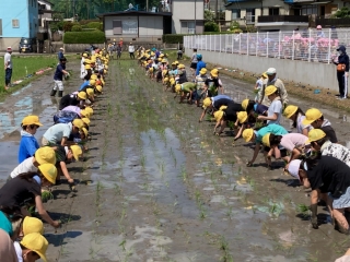 |  5年生が、営農改善組合の方を招いて、田植え体験を行いました。秋には、稲刈り体験を行う予定です。また、6年生を対象に、愛知教育大学の「訪問科学実験わくわく」がありました。4教室に分かれて実験を見せてもらいました。  |