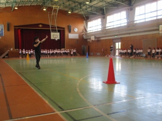 |  刈谷市が取り組んでいる「体力向上プロジェクト」の一つとして、講師の先生を招いて、体つくり運動講習会を行いました。1年生を対象に行われ、どの子も楽しく運動に取り組んでいました。 |