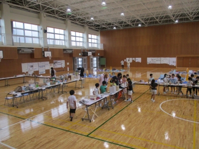 |  夏休み作品展が始まりました。新体育館に、夏休みに取り組んだ工作と理科研究が展示してあります。開催日時は、9月6日と7日は(9:00-17:30)、9月8日は(9:00-11:00)となっています。  |