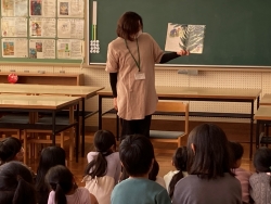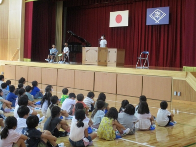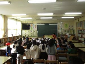 25分放課に図書ボランティアの方々によるお話会がありました。今回のお話会は、音楽も取り入れたお話会で、子どもたちは楽しそうにお話を聞いていました。