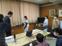 延期となっていた学校集会をリモートで行いました。校長先生のお話に続き、児童会役員の任命や表彰を行いました。  |