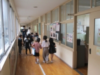 |   1・2年生がペアになって、学校探検を行いました。2年生が1年生を案内して、校内を回りました。校長室も入ることができ、歴代の校長先生の写真の多さに驚いていました。  |