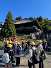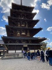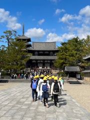 |  昼食も終わり、最後の見学地の法隆寺です。バスガイドさんの案内でクラスごとに見学をします。 |
