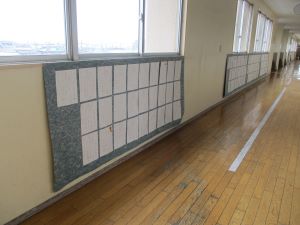 |  校内書き初め展が行われました。10日に行われた書き初め会での作品を展示しました。  |