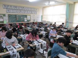 校内書き初め会を行いました。1・2年生は硬筆で、3~6年生は毛筆です。