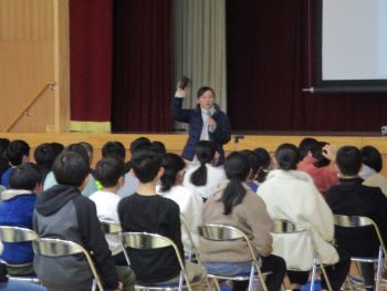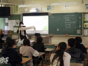 |  株式会社luminoso(ルミノソ)の逢楽安希子さんを講師に招き、5年生・6年生を対象に学年ごとに1時間ずつ行いました。ネット・スマホ・ゲーム機によるトラブルに遭わないための方法等、実際のトラブル例を用いて、わかりやすく教えていただきました。  |