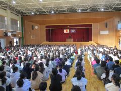 |  2学期始業式を行いました。校長先生からは、「愛があふれる学校」について、3つのお話がありました。始業式後の集会では、3名の児童から「2学期に向けて」の意見発表がありました。 |