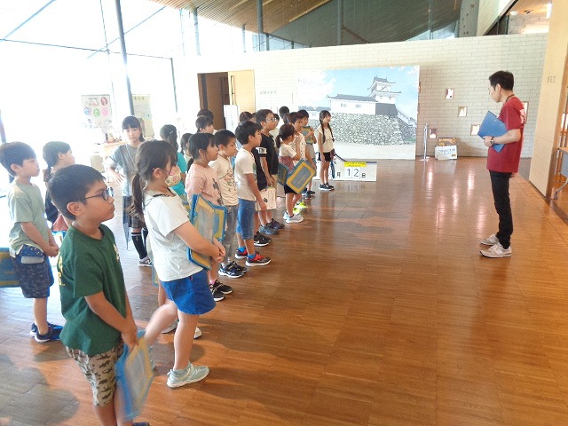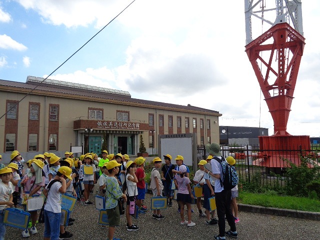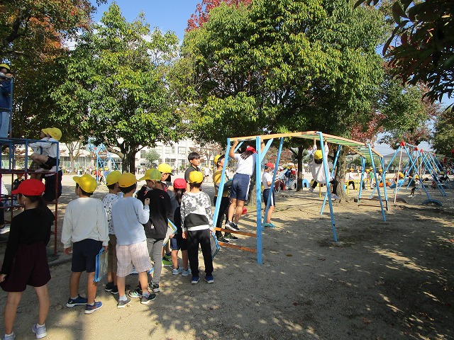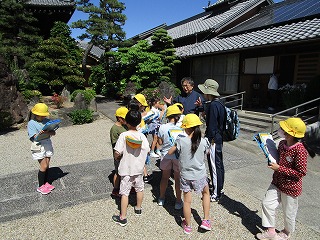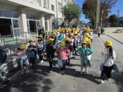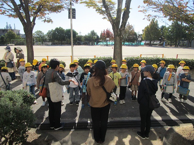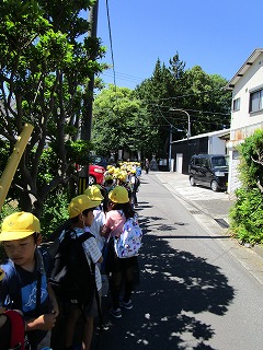 1回目の町探検に行きました。皆で整列して出発です。ボランティアの方々にも付き添っていただき、グループで決めた見学場所で学習をしました。