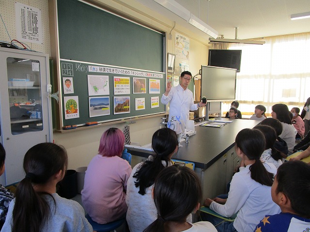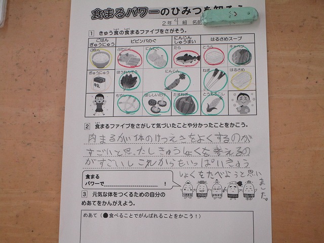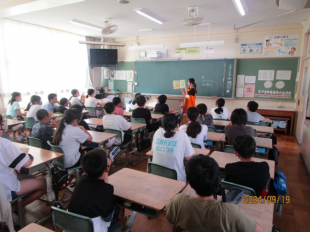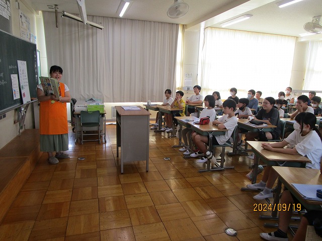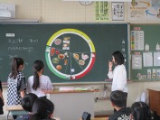 5年生になり、新たに家庭科の学習が始まりました。今日は、「クッキングはじめの一歩」の学習で、栄養教諭の先生に「五大栄養素」について教えていただく授業を受けました。食事、栄養について、楽しく真剣に学んでいました。