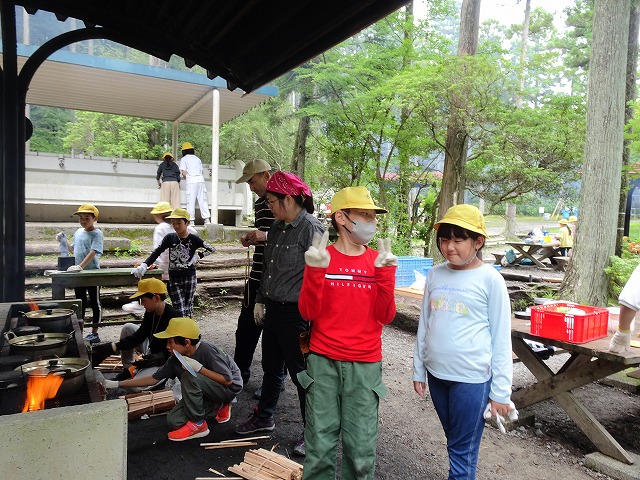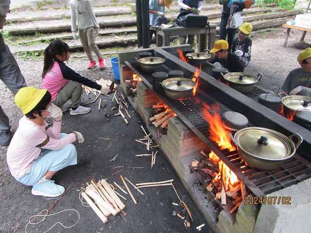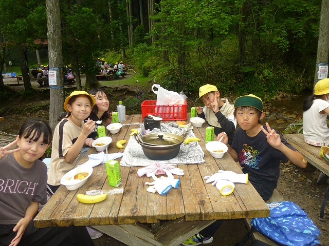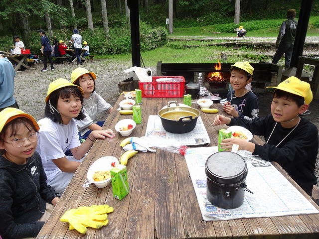 7月2日、3日は、5年生のみんなが待ちに待ったみどりの学校です。刈谷を離れ、1拍2日の山の生活が始まりました。子どもたちを乗せたバスは、無事に野外教育センターに到着。野外炊飯カレー作りは大成功。夜は、キャンプファイヤーで大盛り上がり。予定通り1日目を終えました。