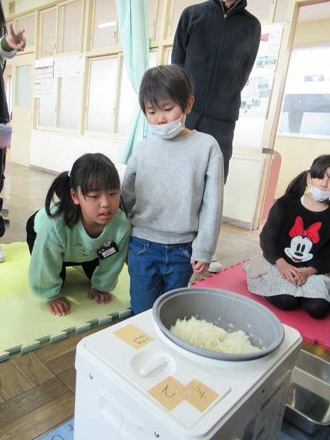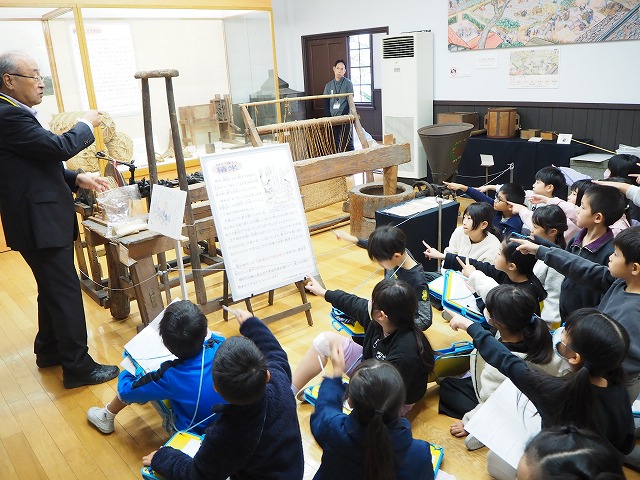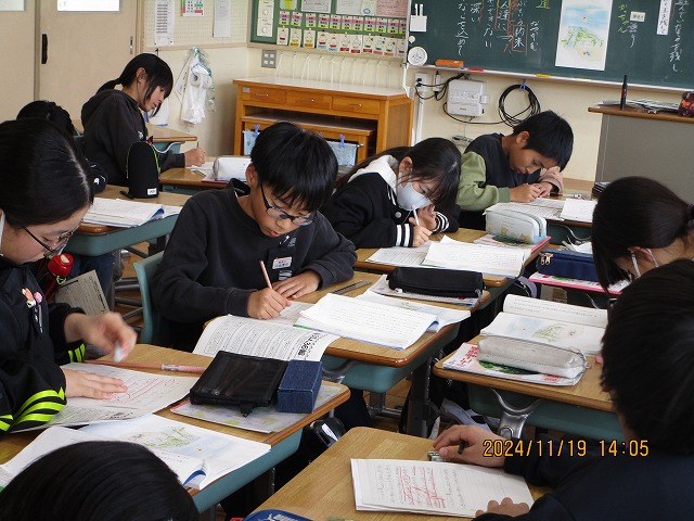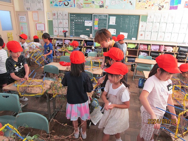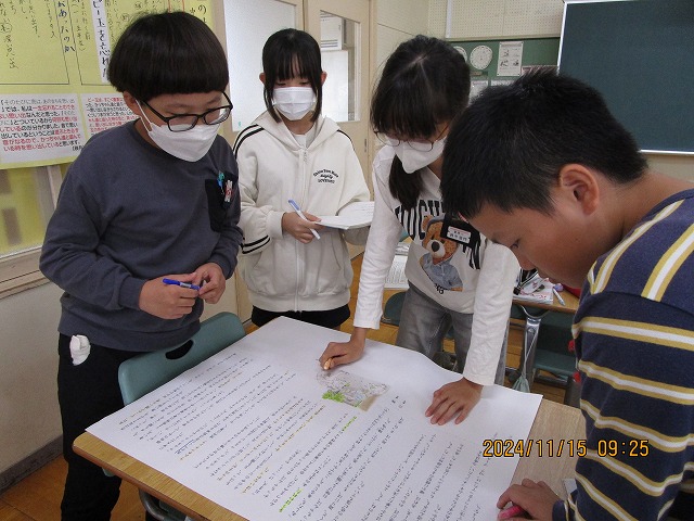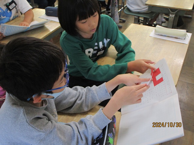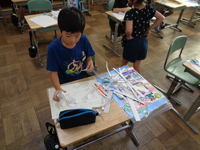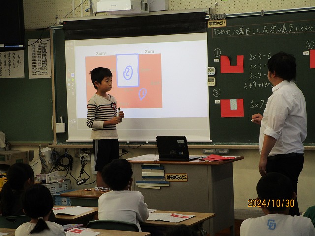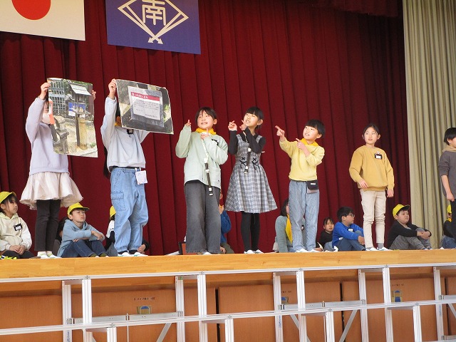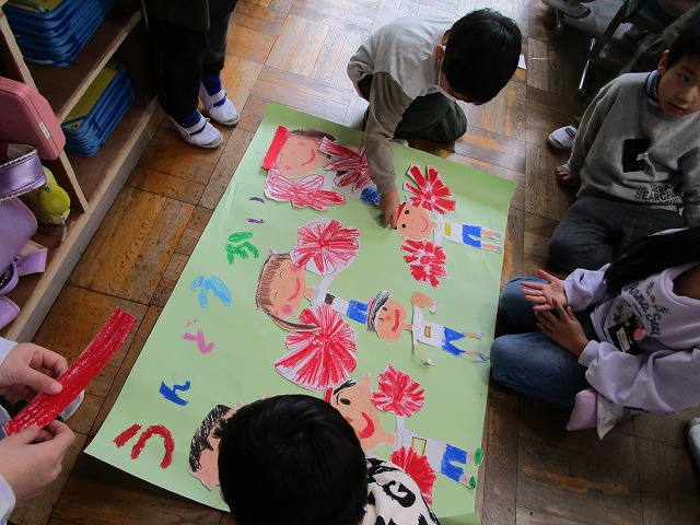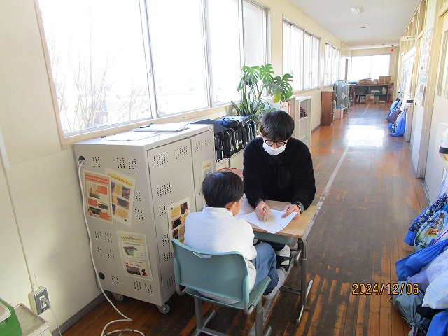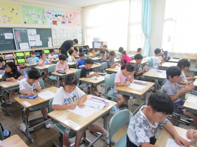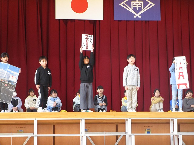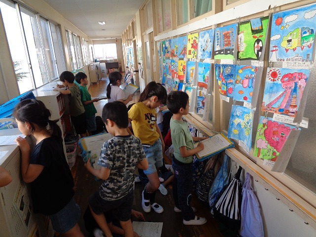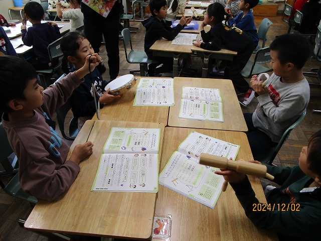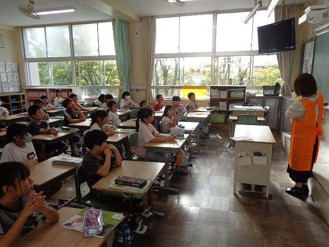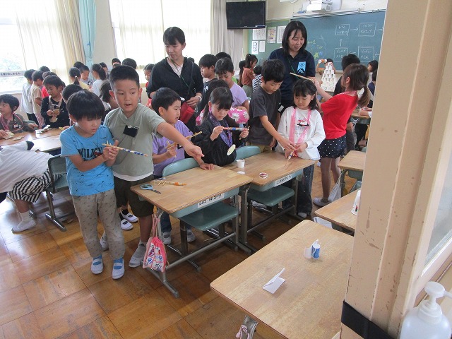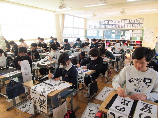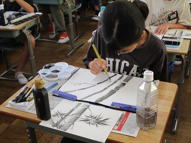 2年生が教室で図工作品の鑑賞会を行っていました。素敵だなと思ったクラスメイトの作品のよいところを、他の子にも知ってもらおうと、堂々と発表する姿が見られました。3年生は、音楽の授業でお囃子を体験していました。最後は、たくさん練習してきた歌の中から「帰り道」を選んで歌っていました。3年生らしい伸びやかな歌声でした。