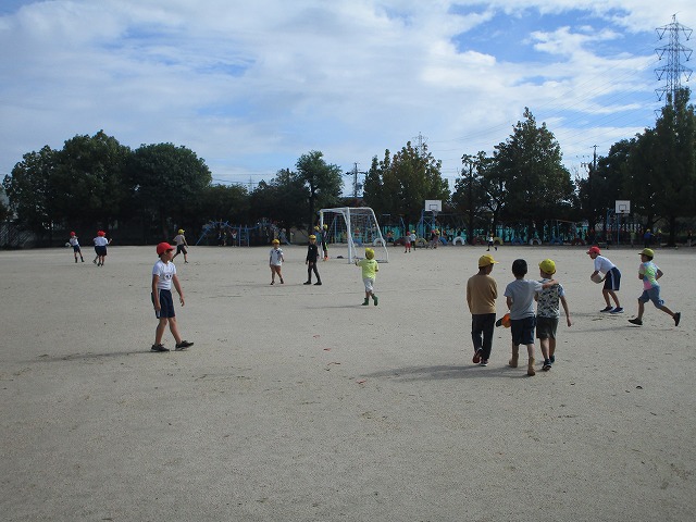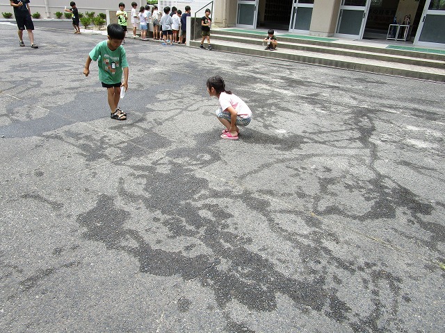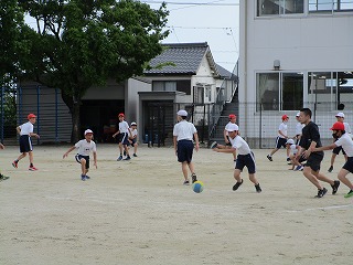 運動場から賑やかな声が聞こえてきました。2年生が、学年レクリエーションでドッジボールをしていました。2年生にもなると、速くて強い球を投げられる子も出てきます。前後左右からとんでくるボールに、大きな声を上げながら、当たらないように皆で逃げ回っていました。楽しそうな笑顔がたくさん見られた1時間でした。
