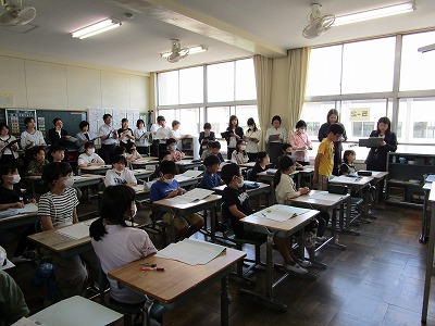 愛知教育大学の学生さんが、「学校体験活動」に来ています。2年生の教室で、子どもたちのサポートをしたり、休み時間に一緒に遊んだりしています。将来、素敵な先生になって、再び会いに来てくれることを、子どもたちは楽しみにしています。