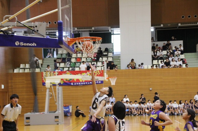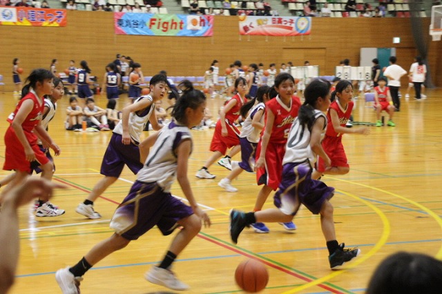 6月22日は、5年バスケットボール大会の最終日。富士松南小のバスケット部は、準決勝を勝ち抜き、決勝戦へ進みました。試合は1クォーター目はリードし、2クォーター目で逆転を許し、点の取り合いになりました。チーム一丸となって、ボールを追い、シュートを打ち、声援を送り、懸命に戦いました。結果は9点差で惜敗し、準優勝となりました。試合後に顧問の先生が「最後まで諦めずにがんばりきることができたね」と、子どもたちを称えていました。 |