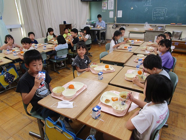久々に仲間と一緒の給食の時間、学級には笑顔があふれていました。