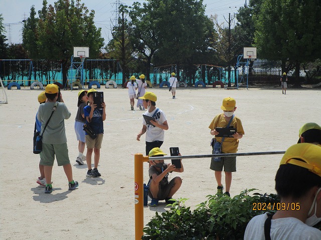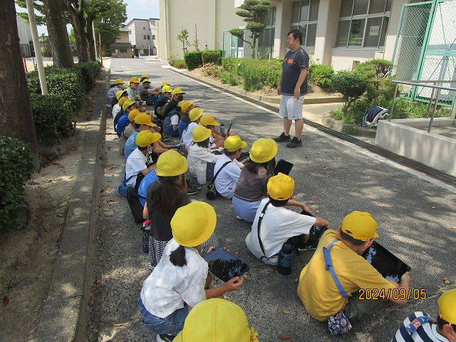 5年生が防災について学んでいます。今日は、正門付近にある防災備蓄倉庫の中を見学し、何が保管されているかを確認しました。いざというときのために、しっかり学ぼうとする意欲的な姿が見られました。