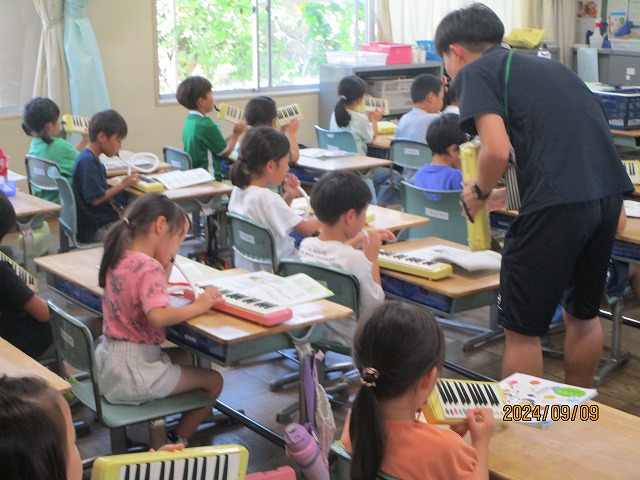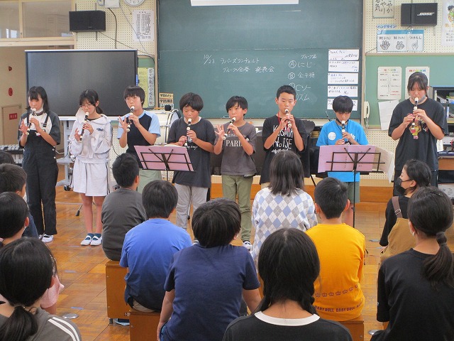 1年生は、合唱とピアニカの演奏をしました。指揮者をよく見て、全員で心を合わせて演奏する姿が立派でした。