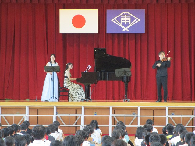 27日(金)の本番に向けて、全学年が体育館に集まってリハーサルを行いました。演奏する学年も、聴く学年も素敵な姿でした。