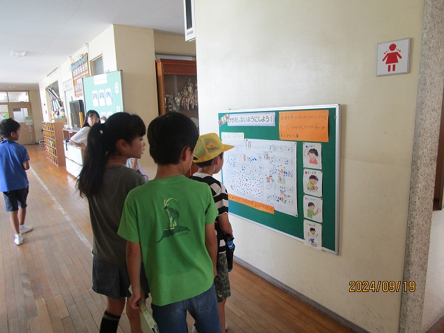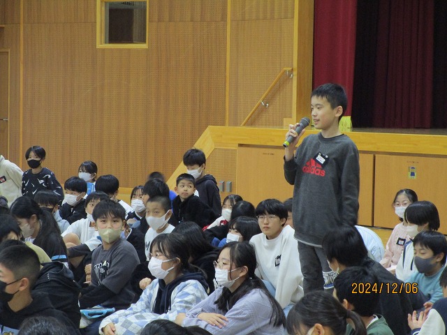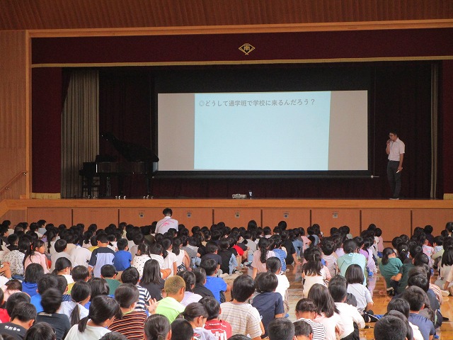 全校集会で人権に関する映像を鑑賞しました。皆で同じ映像を見ましたが、きっと考えたことは一人一人違うことでしょう。集会のあと、「全員の人権が大切にされ、守られるようにしたい」と話す子どもの姿が見られました。