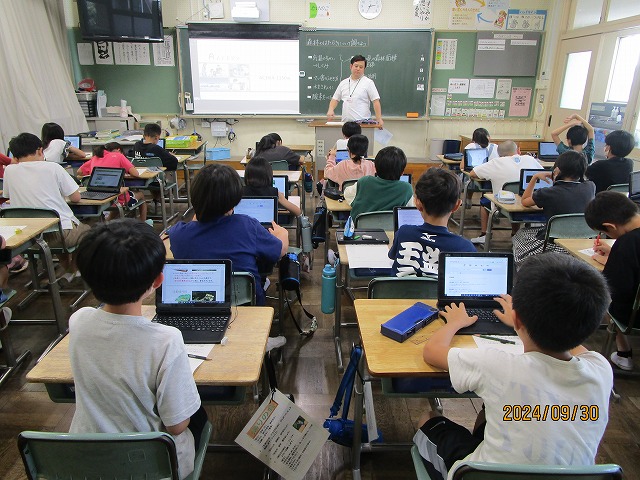 子どもたちが安全にインターネットを利用するために、インターネットに潜む危険性やその対策を理解し、適切に利用できるようにするため、「青少年のネット安全・安心講座~みんなのネットモラル塾~」が開催されました。子どもたちにとって身近なインターネットということもあり、熱心に耳を傾ける姿が見られました。