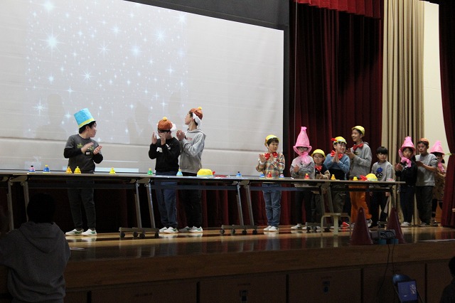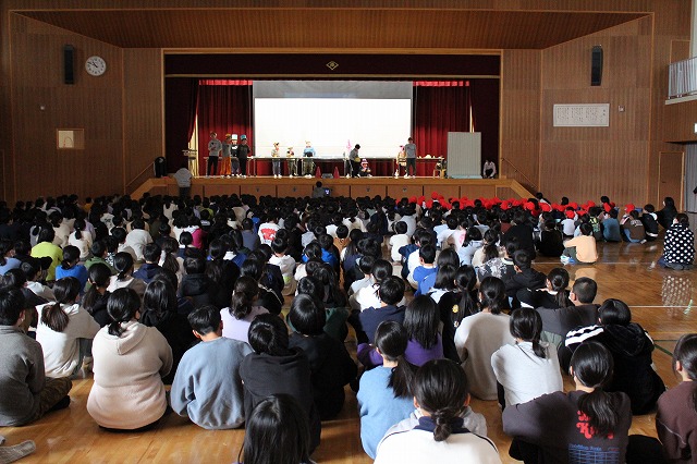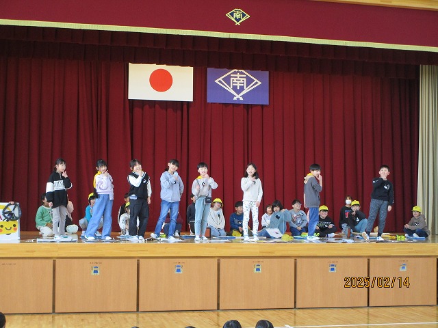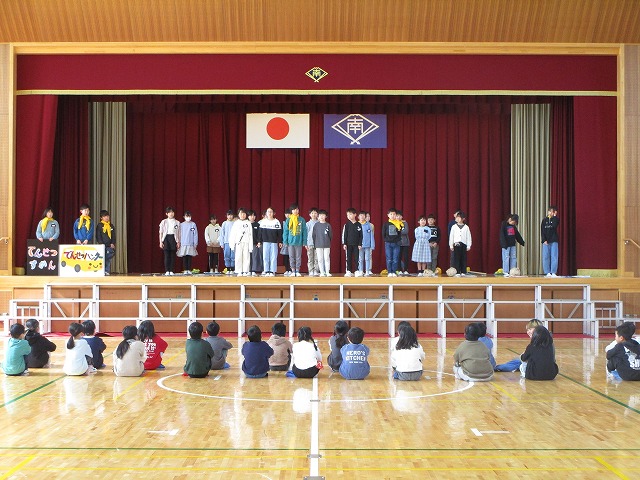 ひまわり学級の皆さんは、金曜日に学習発表会の本番を控えています。今日は、25分放課に体育館でリハーサルを行いました。「リハーサルを行うのでぜひ来てください」という放送をかけると、たくさんの児童が体育館に足を運んでくれました。多くの児童が見守るなか、劇や歌、ベルの演奏など、今まで練習してきたことを披露しました。堂々とした素敵な姿でした。