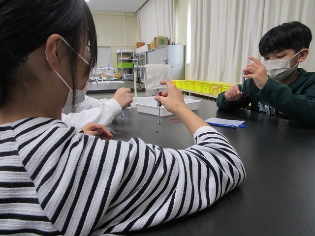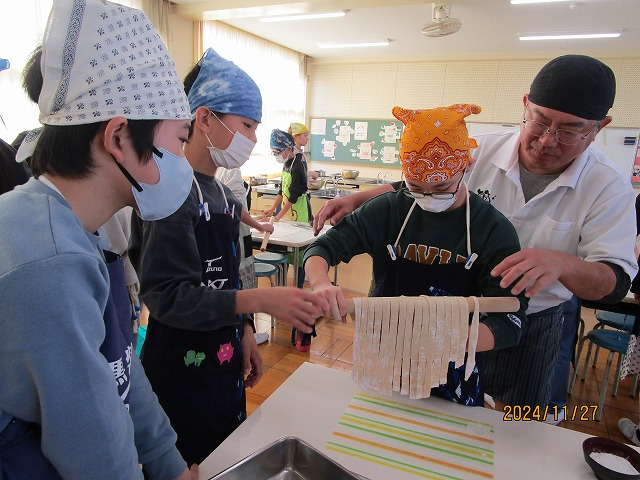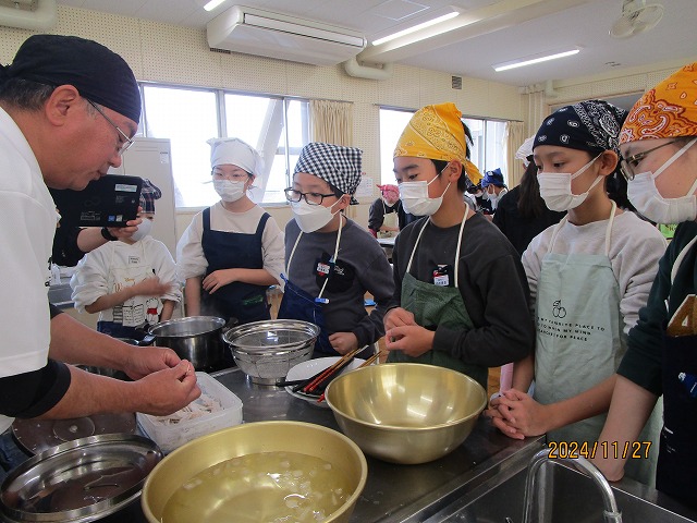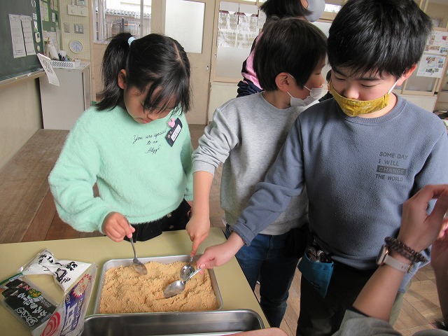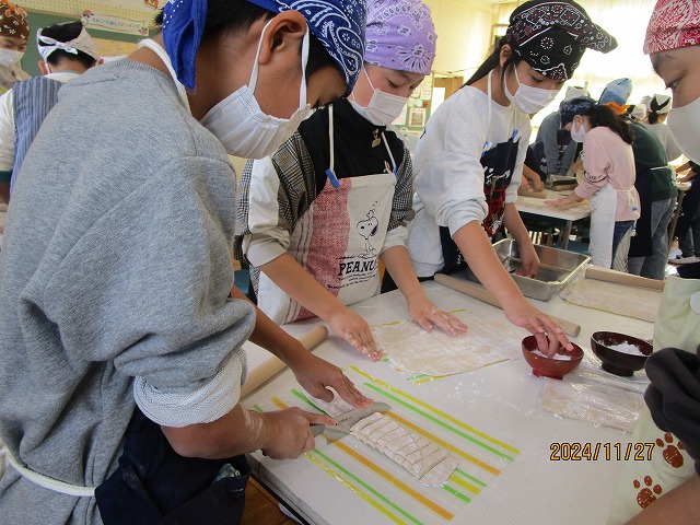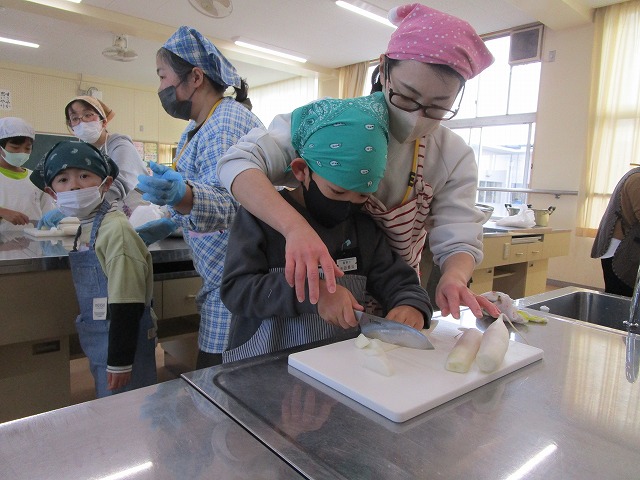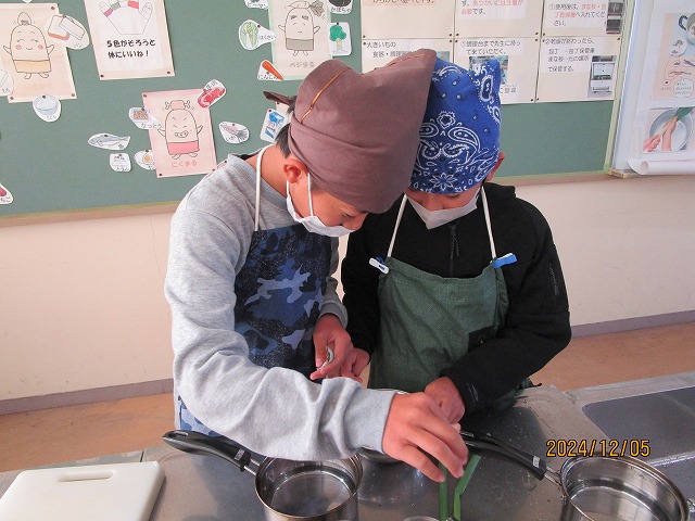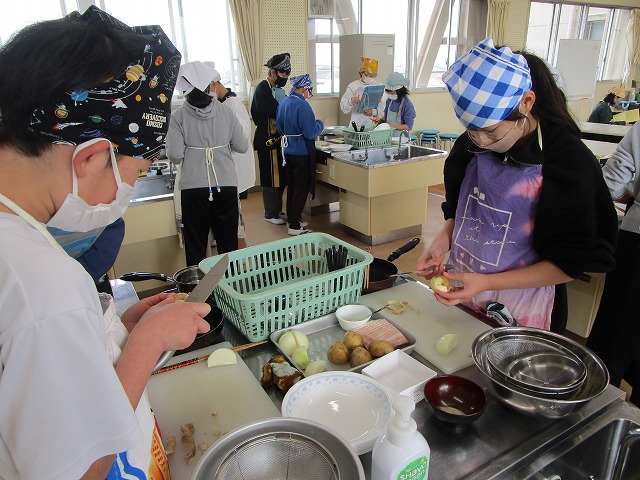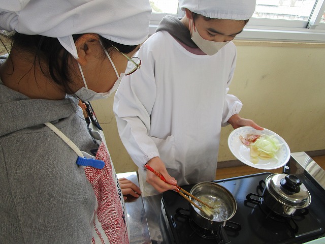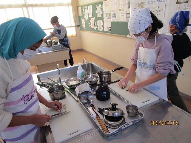 家庭科の学習でネギと豆腐のみそ汁を作りました。普段、家で包丁をよく使う子もいれば、ほぼ初めてという子もいました。教わった手順に沿って、自分で作ったみそ汁の味は、きっとおいしかったことでしょう。