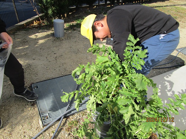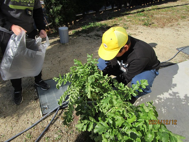 大根の収穫です。日々しっかりとお世話をしてきたので緑色の葉っぱもとてもおいしそうです。