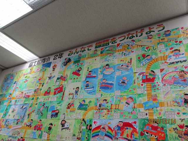 3階渡り廊下の両側の壁には、随分前から6年生のみなさんに向けたメッセージが掲示されています。在校生が卒業生に向けて心を込めて書いたものばかりです。