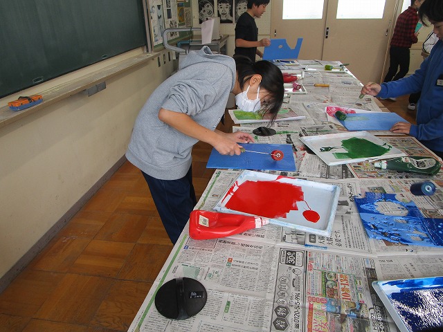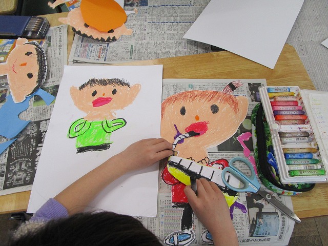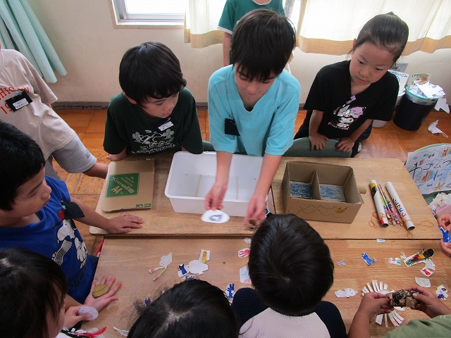 図工の授業の様子です。作品を作るだけでなく、互いの作品の鑑賞も行います。クラスメイトが作った作品のよいところを見つけたり、伝え合ったりします。