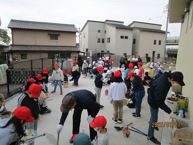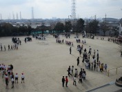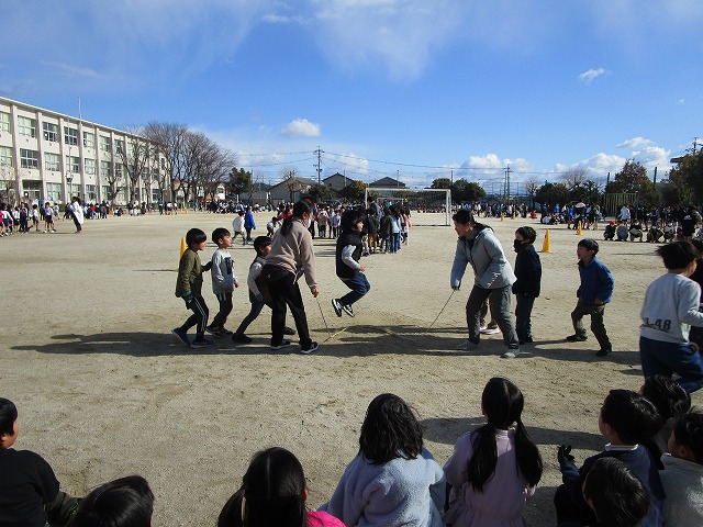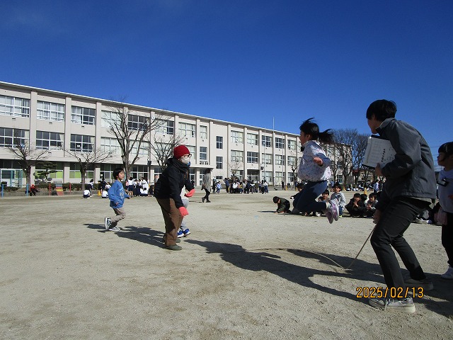 25分放課に、学級ごとにわかれて長縄の「8の字跳び」の練習をしています。1月27日から始まった長縄強調週間ですが、どの学級も日ごとに上手になっています。得意な子が苦手な子にアドバイスする姿や、タイミングが合わずに縄に引っかかってしまった子に「大丈夫!」と声をかけたりする姿も見られます。全校長縄記録会は木曜日です。