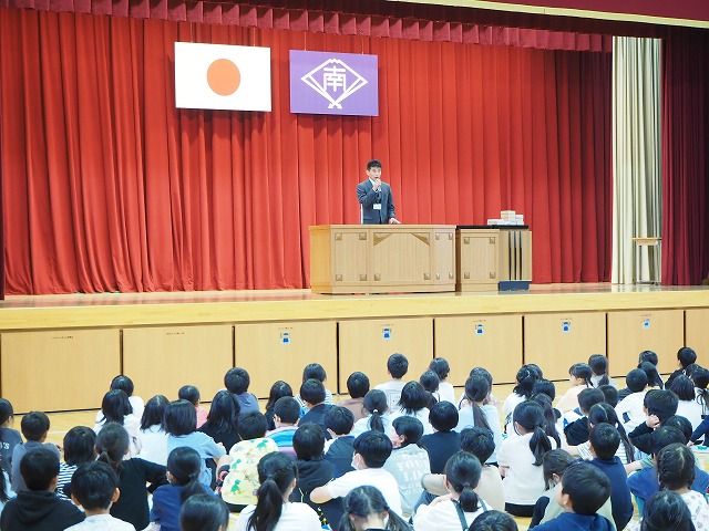 令和7年度前期児童会役員選挙が行われました。5時間目に行った演説会では、立候補者の話に真剣に耳を傾ける3~5年生の姿が見られました。