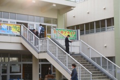 校内に垂れ幕があるのをご存じでしょうか。3枚あります。「富士中プライド」「自律(前期生徒会スローガン)」「交通安全」です。交通安全については北門にあります。富士中プライドと自律は現在昇降口にあります。体育館にある時もあります。この垂れ幕を意識して毎日過ごしていきましょう。また、垂れ幕とは別にたまに登場するのぼりもあります。楽しみにしていてください。
