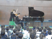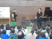 豊田自動織機による小学校訪問ミニコンサートが行われました。ヴァイオリニストの滝千春さんとピアニストの斎藤龍さんにお越しいただき、4~6年生が、一流の音楽を聴くことができました。最後には「虹」を双葉っ子が歌って共演もしました。心のこもった演奏、本物の音楽に触れる機会となり、豊かな心を育むことができました。